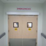 Puerta batiente automática de vidrio marca KBB.