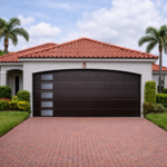 Puerta Seccional Residencial Chocolate Nuez con Ventanas